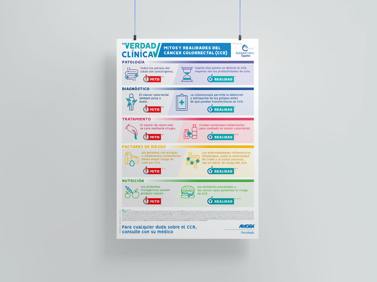Actualmente tenemos más información que nunca sobre el cáncer colorrectal (CCR), pero no todos los datos que encontramos son del todo ciertos. El acceso a información apropiada y veraz puede ayudar al paciente y sus familiares durante el proceso. Desde Amgen ayudan a rebatir los numerosos mitos y falsas creencias existentes sobre esta enfermedad.