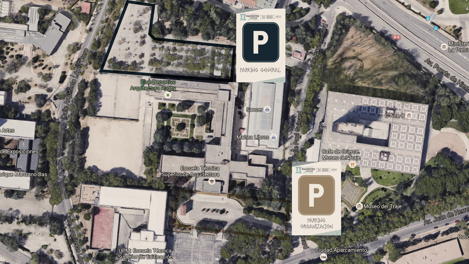 Si necesitas estacionar tu coche, la sede del congreso cuenta con aparcamiento al que podrás acceder de forma totalmente gratuita. También podrás aparcarlo alrededor del edificio en cualquiera de las plazas que existen en el propio campus universitario.