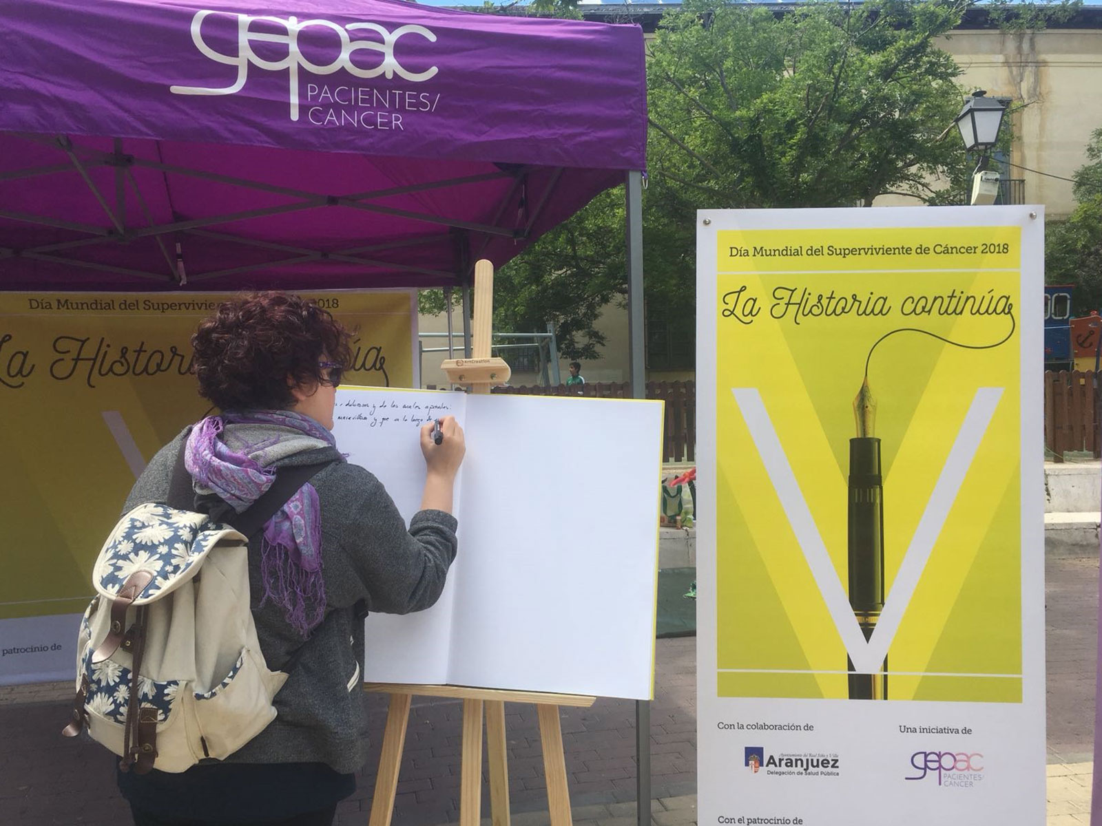 Colocaremos unos atriles en los que encontraremos unos grandes libros abiertos similares a los libros de firmas. En cada uno de estos libros, los supervivientes, pacientes con cáncer, familiares o curiosos, podrán mostrar al resto sus recursos literarios. El fin es demostrar que todos podemos continuar una historia.