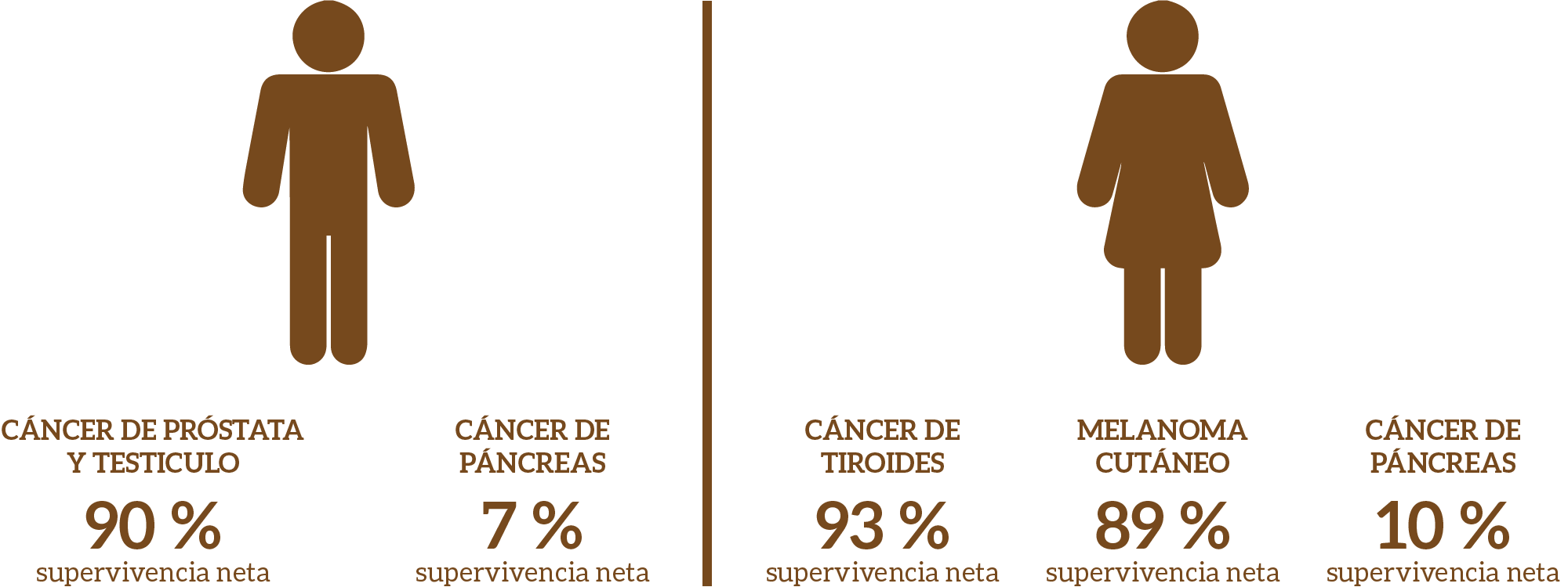 Estas diferencias en la supervivencia entre sexos se deben principalmente al tipo de cáncer, ya que ciertos tipos tienen mejor pronóstico que otros. Por ejemplo: