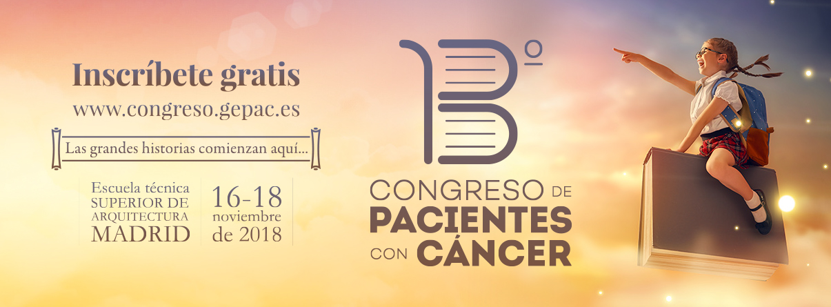 Madrid, 17 de octubre de 2018. El Grupo Español de Pacientes con Cáncer celebrará, los próximos días 16, 17 y 18 de noviembre, su 13º Congreso de Pacientes con Cáncer en la Escuela Técnica Superior de Arquitectura de Madrid. El evento está dirigido a todas las personas con cáncer y sus familiares y en él, GEPAC les ofrece la posibilidad de compartir sus experiencias y de participar de forma gratuita en más de 80 ponencias, talleres y actividades, impartidas por profesionales sanitarios, en las que se difundirá información de forma veraz y comprensible sobre esta enfermedad.
