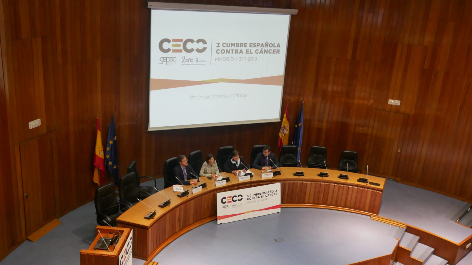 Madrid, 31 de enero de 2019. La primera Cumbre Española Contra el Cáncer, celebrada hoy en el Ministerio de Sanidad, Consumo y Bienestar Social (Madrid), ha reunido a los principales agentes sociales que intervienen en el proceso oncológico: representantes de instituciones públicas y privadas, sociedades científicas, profesionales sociosanitarios, asociaciones de pacientes, medios de comunicación, etc. También han asistido pacientes y familiares de personas con cáncer. Allí, han podido contrastar posturas, se han establecido unos objetivos comunes y se ha diseñado la primera hoja de ruta con los diferentes procedimientos a seguir en materia de cáncer a nivel nacional.